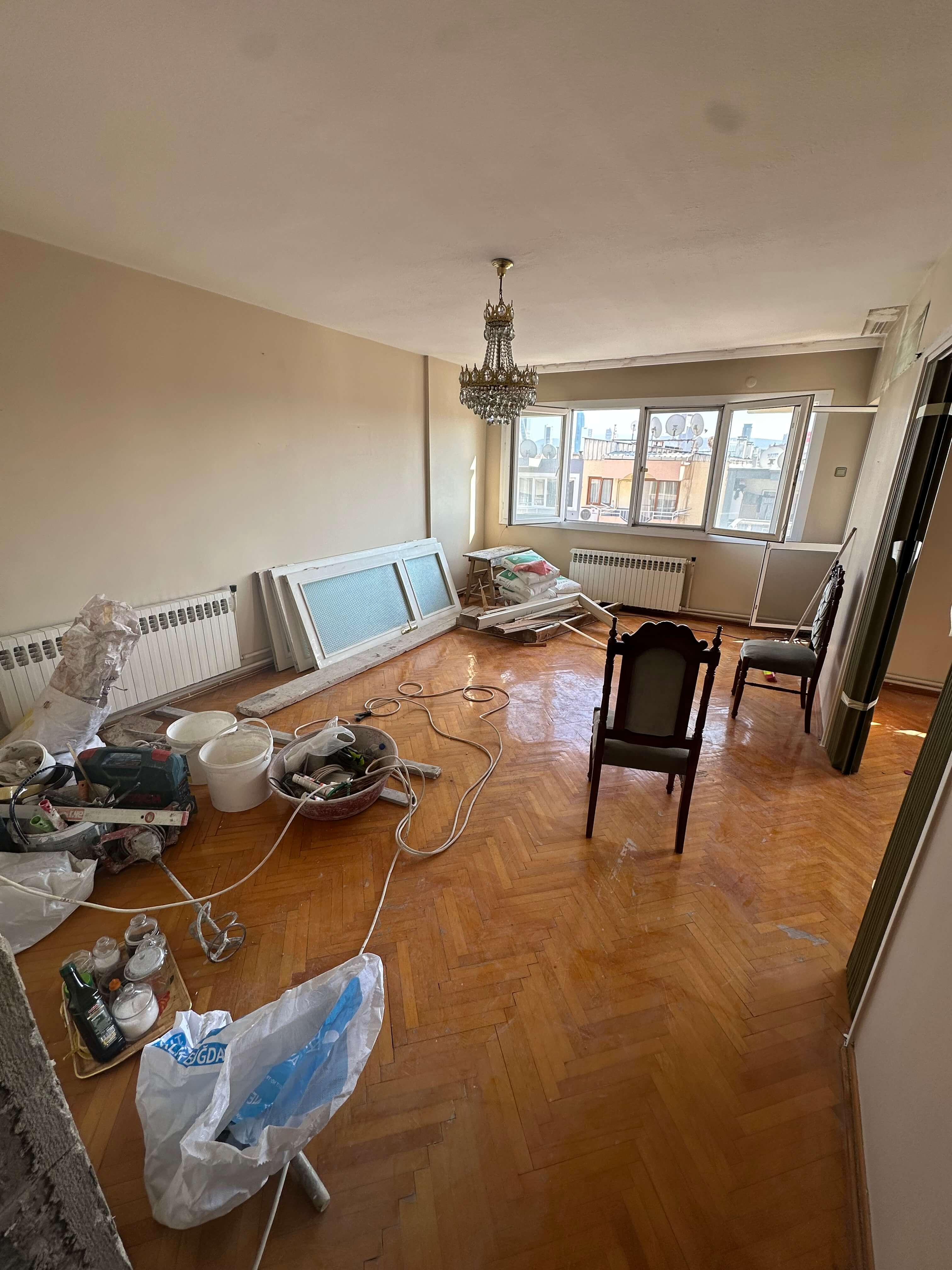 150 m2 olan 3+1 dairemizde komple tadilat gerçekleşmektedir. 2 banyo, 1 mutfak ve odalarda yapılacak tüm tadilatlar tarafımızdan alanında uzman ekiplerimizce yapılmaktadır. Yapılacak tüm işlerimiz iç mimarımız tarafından hazırlanıp daire sahiplerine sunulup gerekli onaylar alınarak devam etmektedir. Tahmini teslim süremiz 3 aydır.
