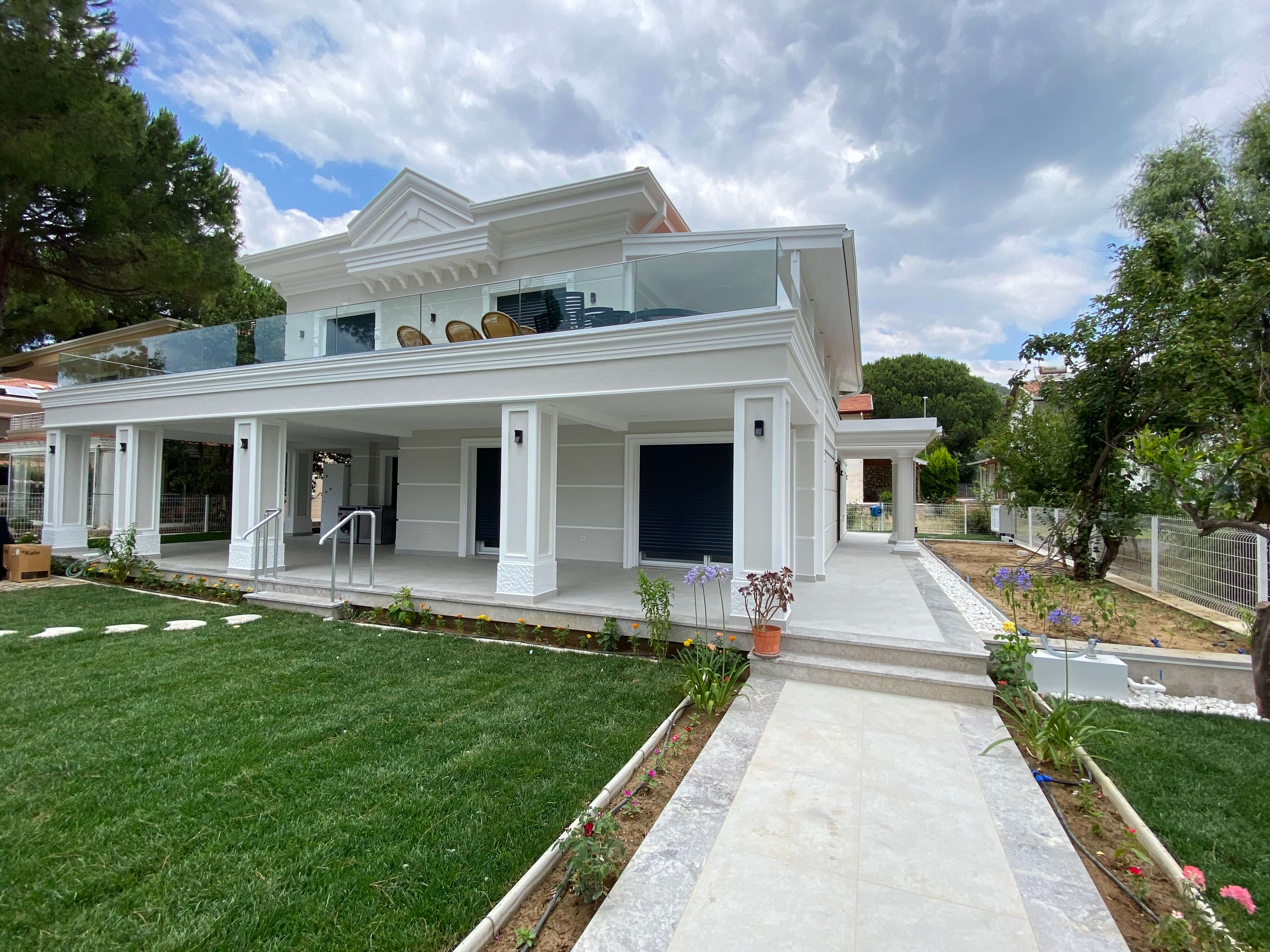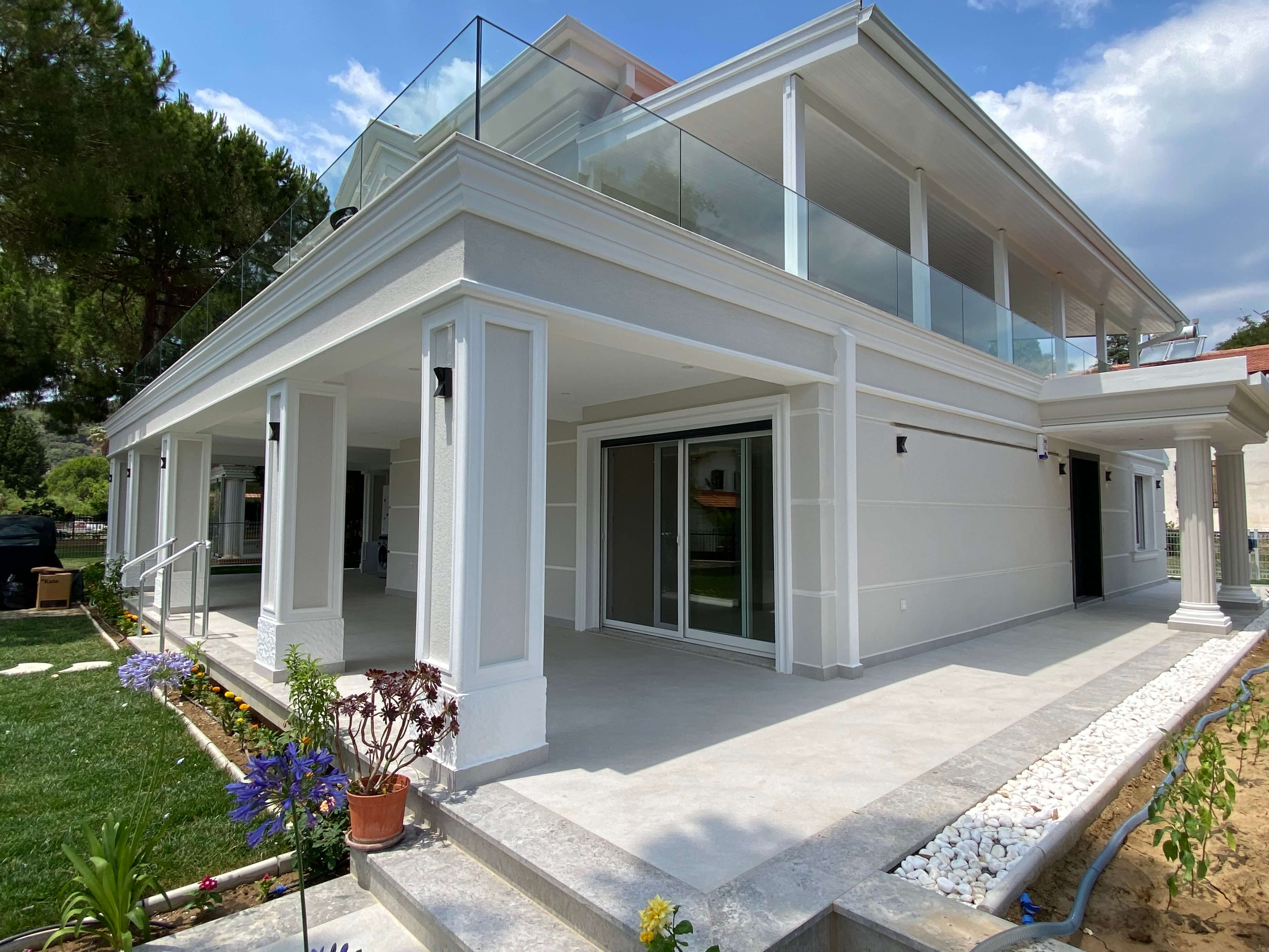 Yazlık olarak kullanılan eski villa komple yenileme ile revizyona uğramış olup tüm tesisat işleri, mantolama, seramik, çatı, yerden ısıtma, klima, sıcak su termal panel destekli, bahçe peyzaj işleri tamamı anahtar teslim şeklinde tarafımızdan sahiplerine sorunsuz bir şekilde teslim edilmiştir. Proje 8 ayda tamamlanmıştır.