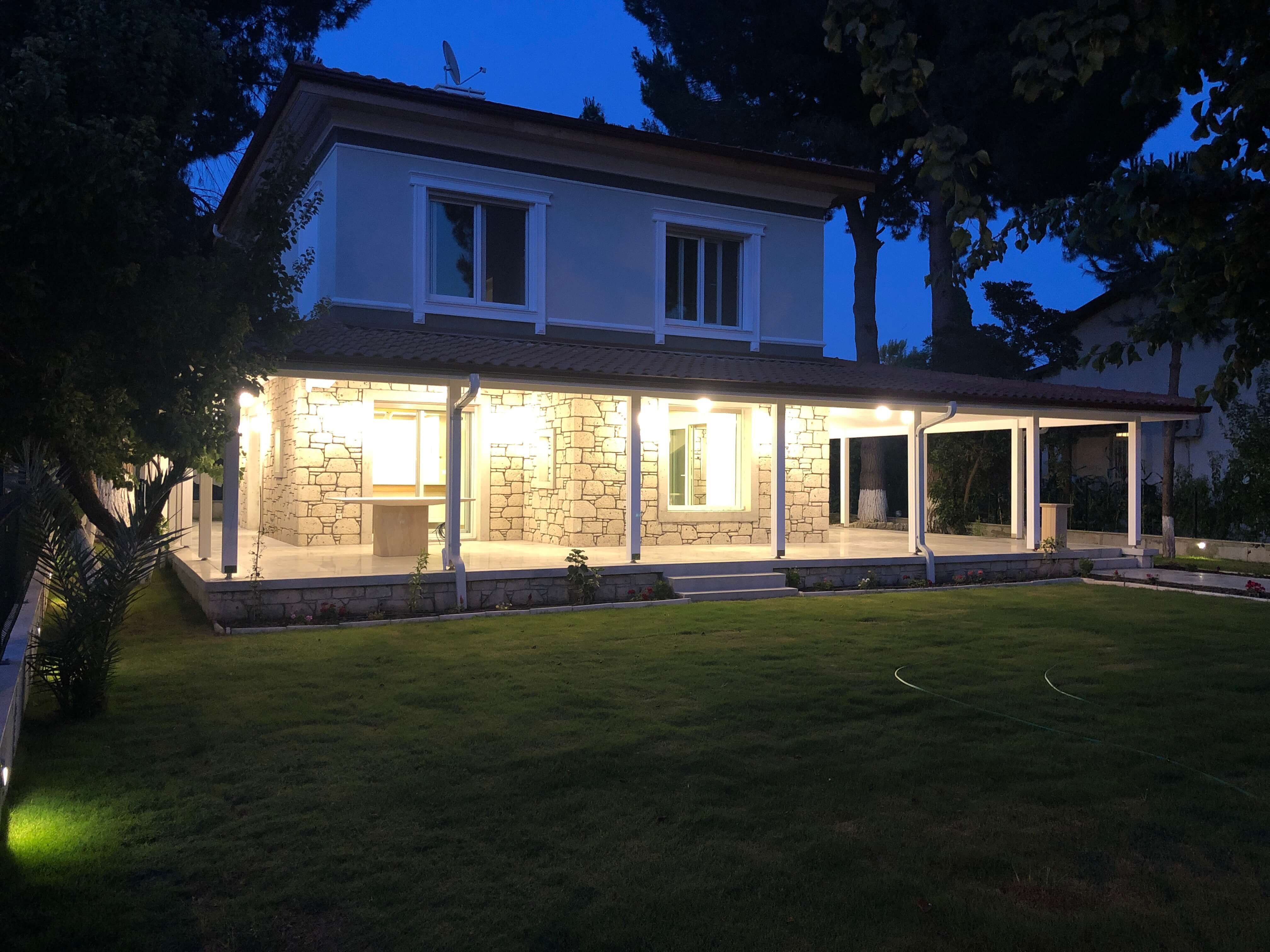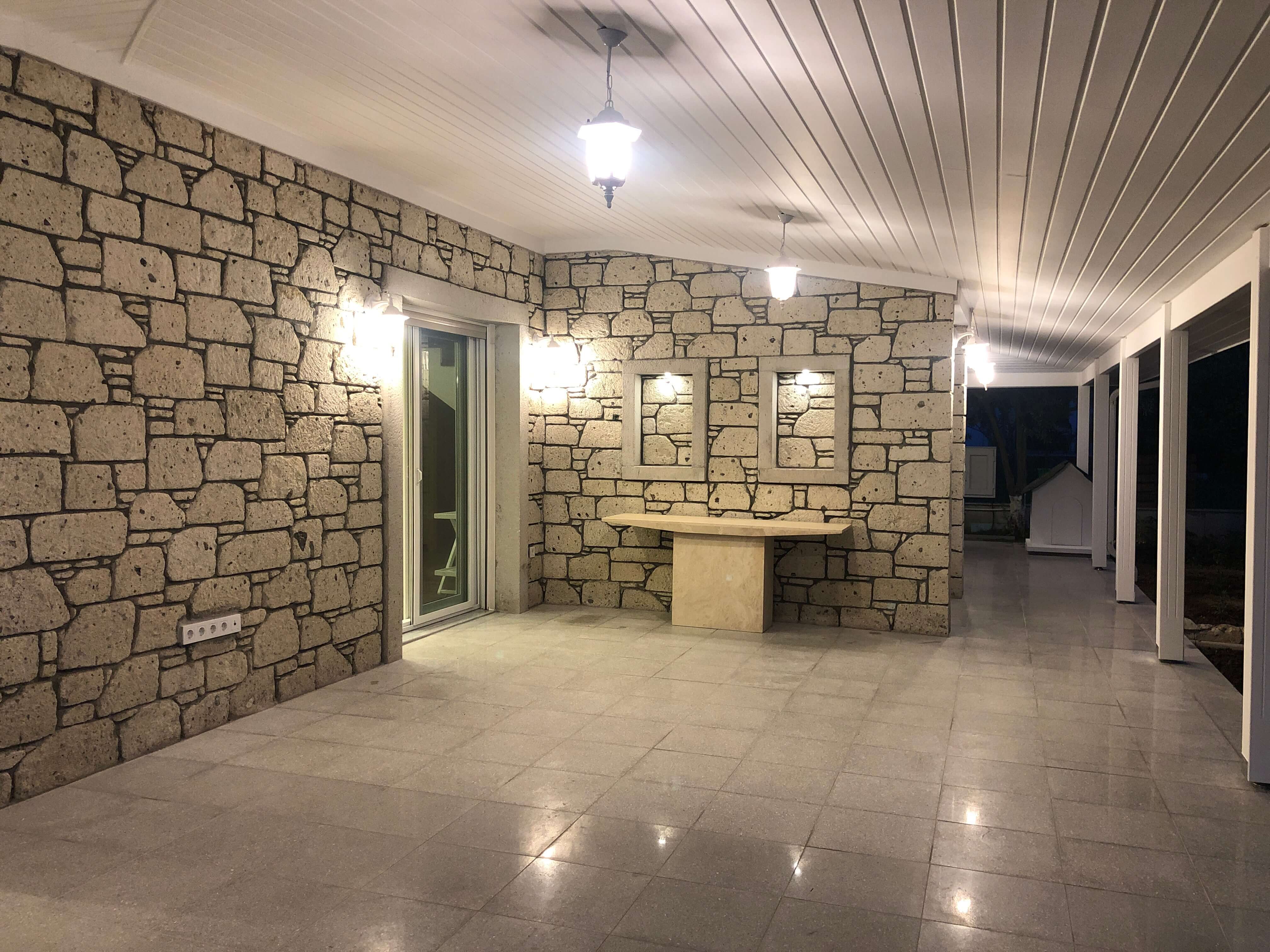 Yazlık olarak kullanılan eski villa komple tadilata girmiştir. Zemin kat duvarlar alaçatı taşı kaplama yapılmış olup 18 cm kalınlıkta doğal taş ile izole edilmiştir. 1. katta ise 5 cm taşyünün mantolama uygulaması yapılmıştır. Ahşap pergole ve çatı işleri ithal rus çamı kereste ile uygulanmıştır. Proje 7 ayda teslim edilmiştir.